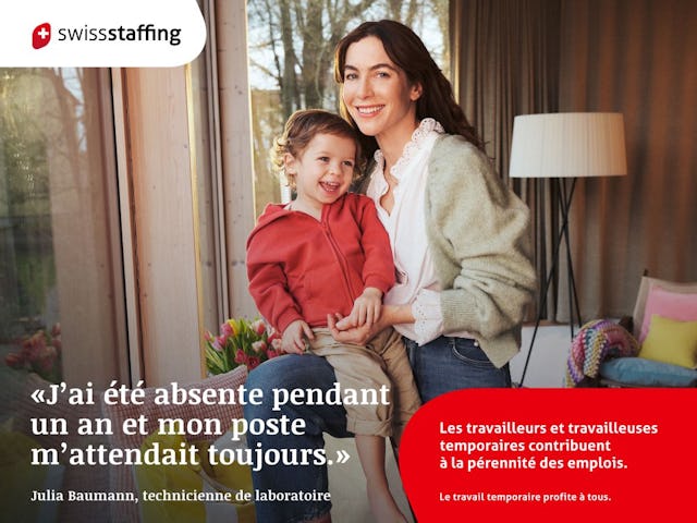 swissstaffing est le centre de compétence et de service pour les entreprises suisses de location de services. En tant qu’association des employeurs, swissstaffing défend les intérêts de plus de 500 membres auprès de tous les acteurs politiques, économiques et sociaux. swissstaffing est partenaire social de la CCT Location de services, le contrat incluant le plus d’employés de Suisse. www.swissstaffing.ch/fr/